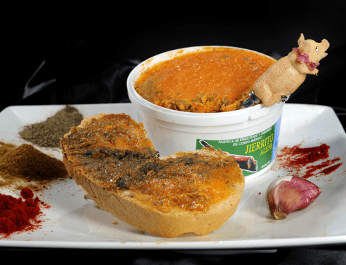 Caldillo artesanal fresco y 100% natural. Elaborado a base de la mejor manteca de cerdo ibérico de bellota, hígado, sal, pimentón de denominación de origen, pimienta negra, nuez moscada, comino, anís, clavo, canela, laurel, cebolla y ajo fresco.